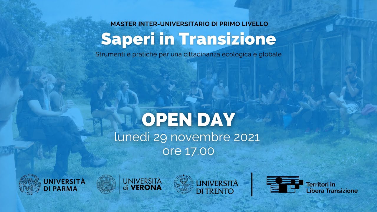 Il master inter-universitario di I livello “Saperi in Transizione. Strumenti e pratiche per una cittadinanza ecologica e globale” giunge alla seconda edizione e verrà presentato online lunedì 29 novembre alle 17. L’Open day è organizzato dal laboratorio inter-universitario di ricerca TiLT|Territori in Libera Transizione, promotore del master insieme all’ateneo, all’università di Parma e a quella di Trento.