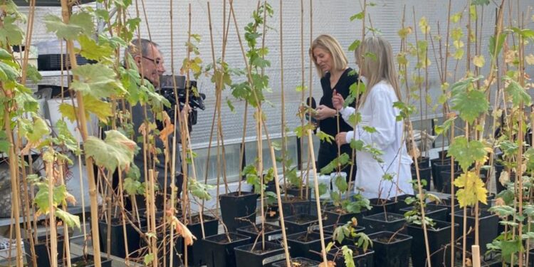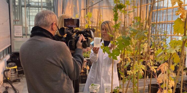 Durante il collegamento, Zenoni è intervenuta in diretta dalla serra dove ha illustrato il lavoro di sperimentazione sulle viti Tea svolto dal suo gruppo di ricerca.