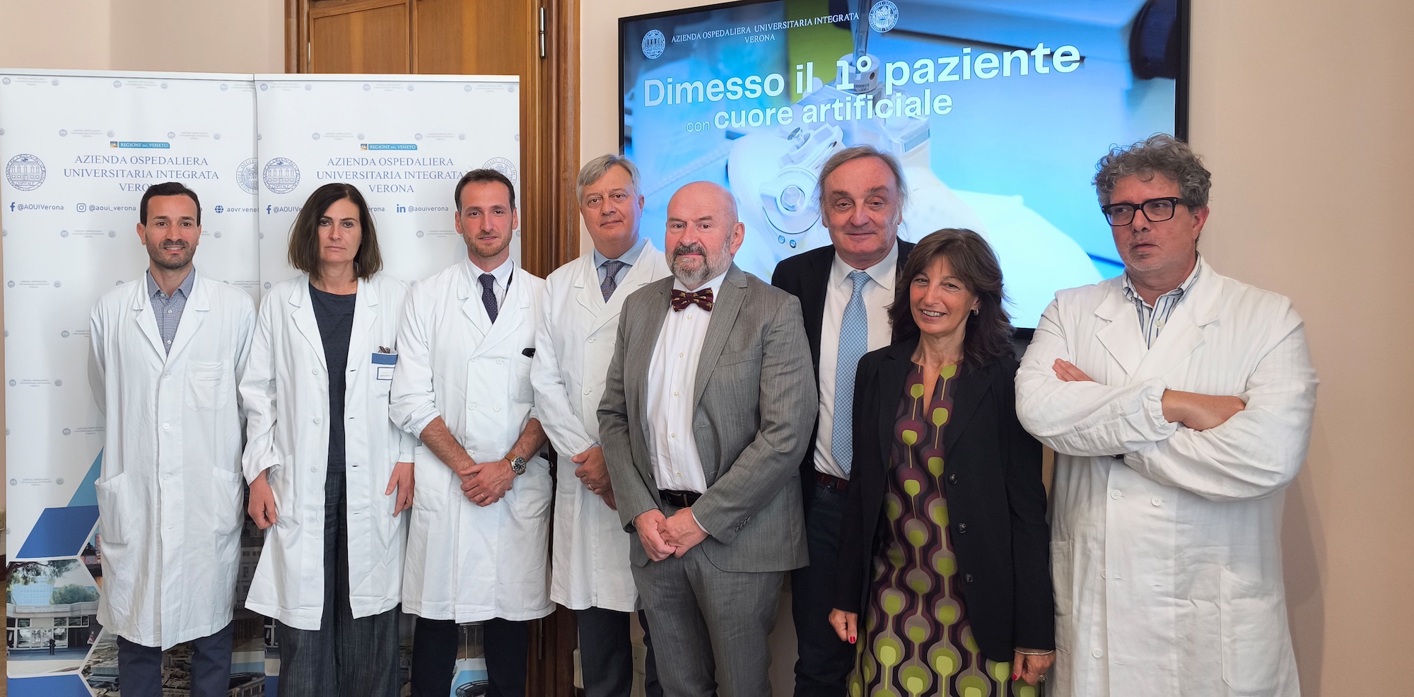 Sono buone le condizioni del primo paziente sottoposto a trapianto di cuore artificiale nel Veneto il 26 marzo scorso, il primo eseguito in un policlinico universitario. Il paziente, 52enne veronese in attesa di trapianto di cuore è stato dimesso una settimana fa dal reparto di Cardiochirurgia ed è in una struttura di riabilitazione per un breve periodo prima di tornare a casa. L’intervento di circa 12 ore, è stato eseguito nell’Azienda ospedaliera universitaria integrata di Verona dalla squadra multidisciplinare coordinata da Giovanni Battista Luciani, direttore Cardiochirurgia, docente di Chirurgia cardiaca e composta dal cardiochirurgo dott Livio San Biagio, da Leonardo Gottin, direttore Anestesia e Terapia Intensiva Cardio-Toraco-Vascolare e docente di Anestesiologia da Rocco Tabbì, coordinatore tecnici di perfusione extra-corporea, Enrico Marcolungo e Serena Pedrini, infermieri strumentisti in Cardiochirurgia.