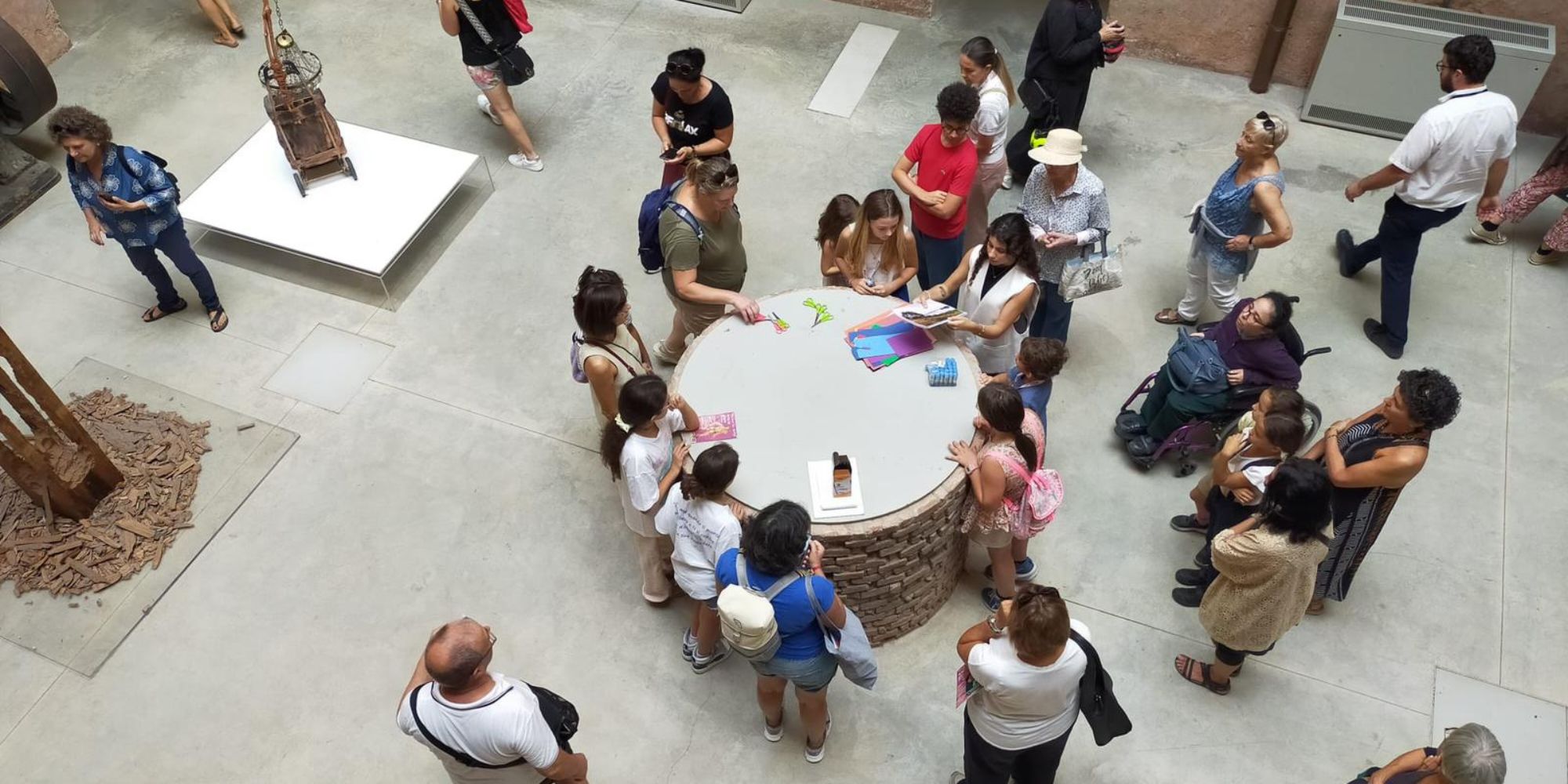 Il gruppo è stato invitato a dare un titolo a installazioni concettuali, a immaginare storie dietro forme e colori, a sporcarsi le mani con piccole creazioni ispirate agli artisti in mostra. L’entusiasmo è stato immediato e costante: i più piccoli si sono lanciati senza esitazione, mentre gli adulti hanno riscoperto con sorpresa il piacere del gioco e tutti hanno potuto partecipare al percorso senza barriere, sottolineando ancora di più il senso profondo dell’iniziativa: l’arte è uno spazio inclusivo.