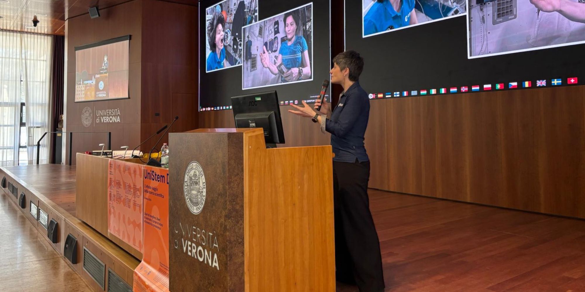 UniStem 2026 si è concentrato, in particolare, sulla scoperta dello spazio e sulla possibilità per l’uomo di esplorarlo e comprenderlo. “Per noi UniStem rappresenta un’occasione straordinaria per avvicinare i giovani al mondo della ricerca, stimolarne la curiosità e aiutarli a confrontarsi con temi che possano ispirarli in un momento cruciale delle loro scelte formative”, ha spiegato Ilaria Decimo, coordinatrice dell’evento e docente di Farmacologia del dipartimento di Diagnostica e sanità pubblica. “Tra i giovani emerge il fascino verso lo spazio e la possibilità per l’uomo di esplorarlo e comprenderlo, e in questo senso rappresenta la massima espressione di cosa vuol dire fare ricerca e spingersi oltre il conosciuto. Per questo motivo, è stato per noi un grandissimo onore e piacere poter accogliere Samantha Cristoforetti, per raccontare ai ragazzi che cosa significhi fare scienza esplorando lo spazio. La sua presenza è stata anche particolarmente preziosa per incoraggiare le giovani studentesse a intraprendere percorsi nelle discipline Stem, e più in generale per ispirare tutti gli studenti che iniziano a immaginare e costruire il proprio futuro”.