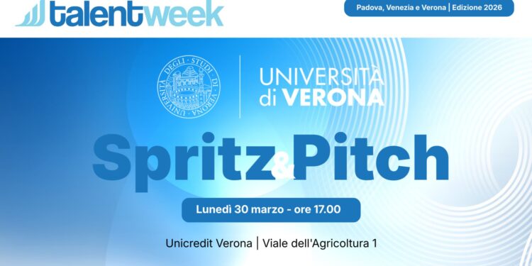 Spritz&Pitch è il format innovativo proposto dall’Università di Verona, in cui gli spin-off dell’ateneo si presentano e dialogano con la comunità studentesca, le ricercatrici e i ricercatori. Si tratta di un’occasione per favorire l’incontro informale tra la realtà universitaria e il mondo imprenditoriale e per mostrare come le idee possono prendere forma e diventare una possibilità reale. L’evento ha avuto luogo lunedì 30 marzo in occasione della Talent Week 2026, un’iniziativa nata nel 2025 per riaffermare l’immagine del Nordest come polo attrattivo per i talenti e le imprese, che puntano su ricerca e innovazione e per connettere i giovani con le migliori realtà economiche e formative del territorio.