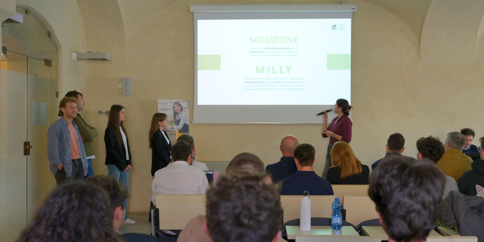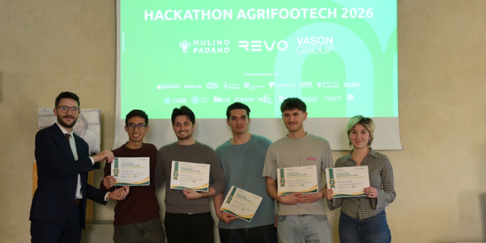 Durante le due giornate, partecipanti provenienti da ambiti come informatica, intelligenza artificiale, biotecnologie e agronomia hanno lavorato fianco a fianco, affiancati da mentor, per sviluppare idee capaci di rispondere a tre challenge aziendali reali. Le sfide, lanciate da Mulino Padano, Revo Insurance e Vason Group, hanno spinto i team a confrontarsi con temi centrali per il settore: dall’innovazione di prodotto nel mercato B2B alla gestione del rischio agroindustriale, fino alle nuove modalità di comunicazione nel mondo del vino.