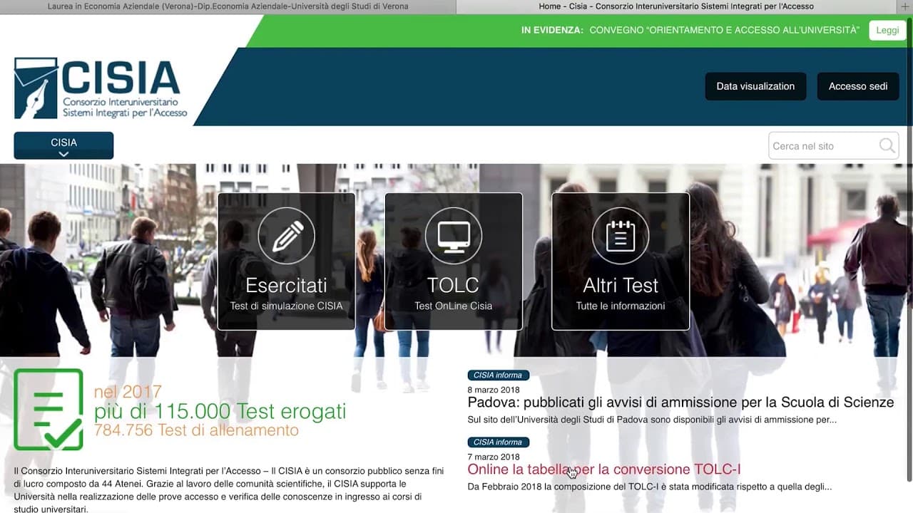 Il Tolc-E è un test erogato su piattaforma informatizzata e gestito dal Consorzio interuniversitario sistemi integrati per l’accesso, Cisia, ente di cui l’università di Verona è partner dallo scorso anno. Si tratta di un test individuale, diverso da studente a studente ma sempre con il medesimo livello di difficoltà, composto da quesiti selezionati automaticamente e casualmente da un database di proprietà Cisia. Ogni Tolc-E si compone di 36 domande, di cui 13 di logica, 10 di comprensione verbale e 13 di matematica, con cinque opzioni di risposta di cui una sola corretta. Il tempo a disposizione per la prova è 90 minuti. Il Tolc-E è ripetibile e può essere sostenuto in una qualsiasi delle sedi universitarie consorziate.