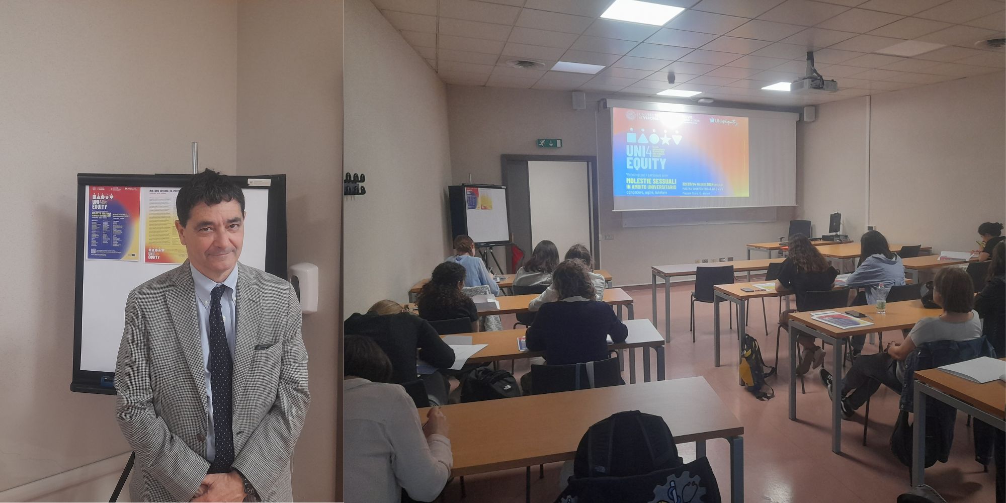 UNI4Equity è un progetto di ricerca finanziato dall’Unione Europea nato nel 2023, con l’obiettivo di contrastare le molestie sessuali nel contesto accademico e promuovere l’uguaglianza di genere nelle università. Il progetto coordinato da Stefano Porru, docente di Medicina del lavoro dell’università di Verona, si propone di promuovere la conoscenza sulle tematiche di genere, la condivisione di buone pratiche, la sensibilizzazione, la formazione del personale, il supporto a vittime e testimoni, l’implementazione di politiche chiare, rafforzando le connessioni all’interno dell’Università di Verona e tra essa e il territorio. Questi obiettivi potranno essere raggiunti integrando strategie d’azione a diversi livelli di prevenzione e prendendo in considerazione l’intera comunità universitaria, coinvolgendo personale studentesco, docenti, personale tecnico e amministrativo.