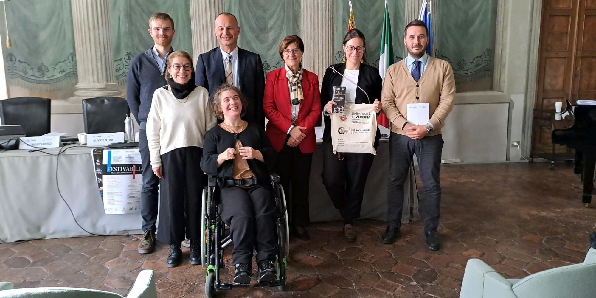 L’iniziativa è stata presentata questa mattina a Palazzo Giuliari durante la conferenza stampa da Roberta Facchinetti, direttrice del dipartimento di Lingue e letterature straniere, Massimo Salgaro, referente per il progetto di eccellenza del dipartimento di Lingue e letterature straniere “Inclusive Humanities”, Manuel Boschiero, referente per l’inclusione e l’accessibilità del dipartimento di Lingue e letterature straniere, Nicoletta Vicentini, regista e Viviana Veronesi, vicepresidente dell’associazione Univr Teatro a rotelle. Presenti anche l’assessora comunale alle Politiche educative e scolastiche Elisa La Paglia e Giorgio Gugole, direttore dell’Esu Verona.