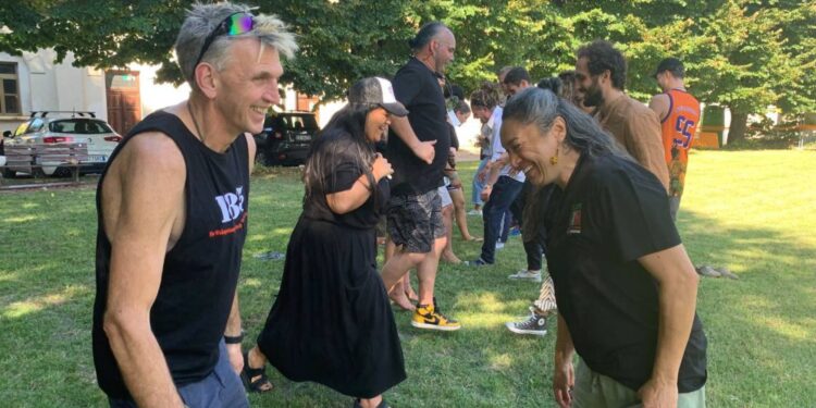 L’energia vitale dei Maori ha animato il verde scenario dell’ex caserma: le loro mani, i volti tatuati ed i possenti cori hanno raccontato la storia di una terra lontana sancendo una complicità immediata attraverso il gioco.