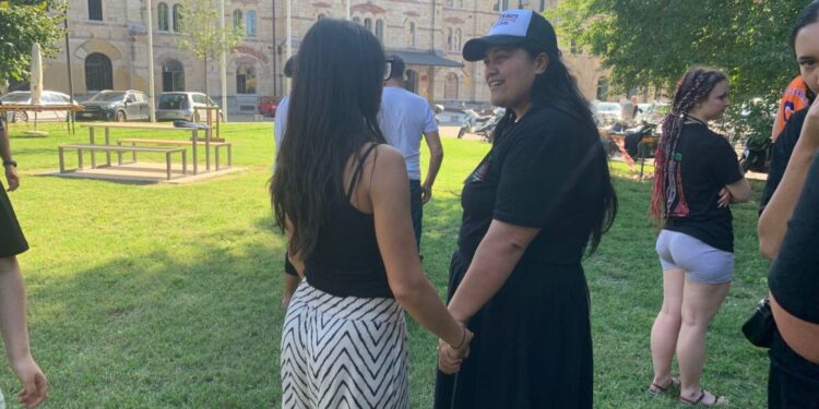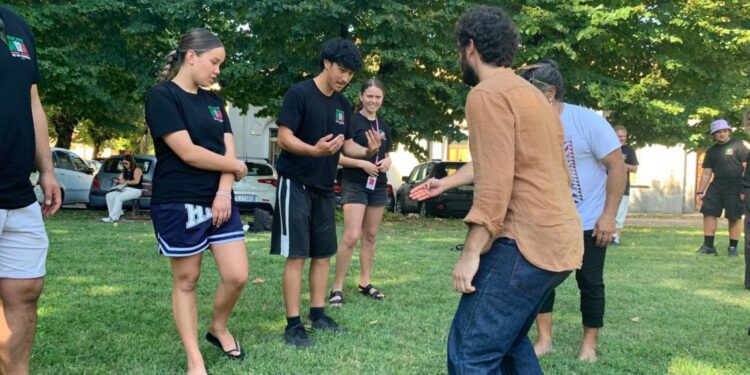 Il gioco proposto era semplice e al tempo stesso travolgente: a turno i partecipanti dovevano ripetere i movimenti vigorosi e decisi dei Maori, che si facevano di volta in volta sempre più veloci. Una sorta di memory corporeo caratterizzato da un’attenta concentrazione, sguardi intensi e vivacissime risate tessendo un legame indissolubile tra Verona e la Nuova Zelanda. E i Maori questo lo sanno bene: “il gioco rappresenta una forte preghiera dal primo movimento fino alla sua conclusione”.